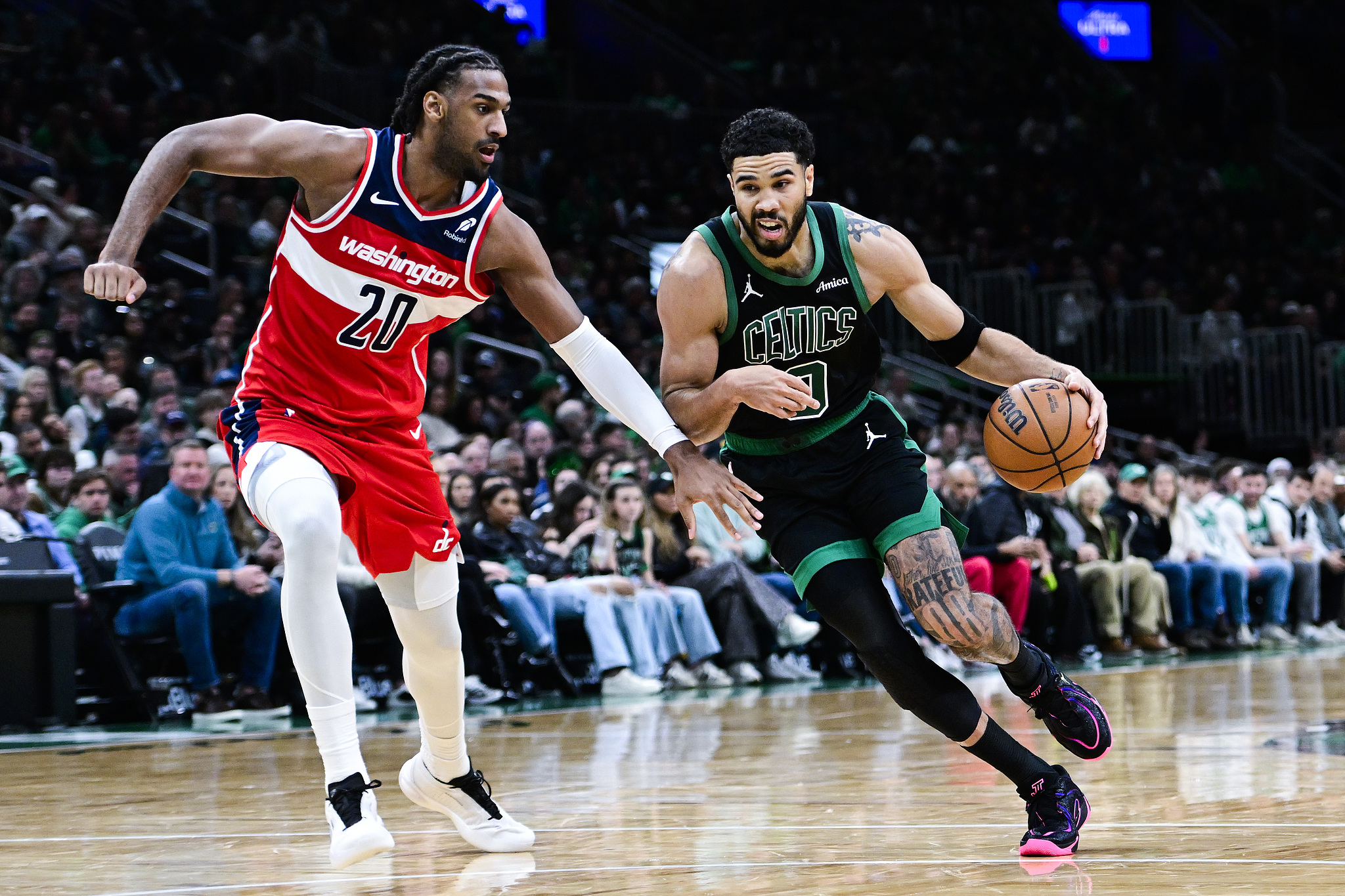凯尔特人方面,塔图姆20分14篮板7助攻,奎塔13中11高效24分10篮板,布朗16分;奇才方面,武克切维奇22分6记三分,特雷·杨11分6助攻,沃特金斯15分6篮板。